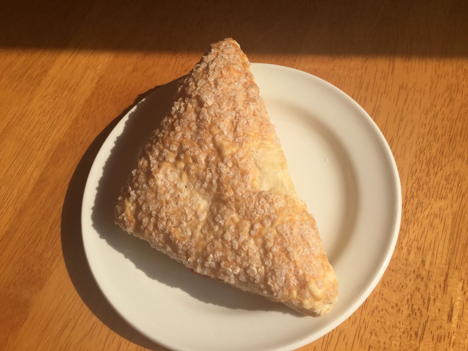 At first we resisted temptation, but Morrison's is literally just across the road from where we are staying...Three days passed then we cracked. On the pretence of getting some milk I ran down the road and soon found myself paying not just for a litre of semi skimmed but a pack of two delectable looking raspberry turnovers.